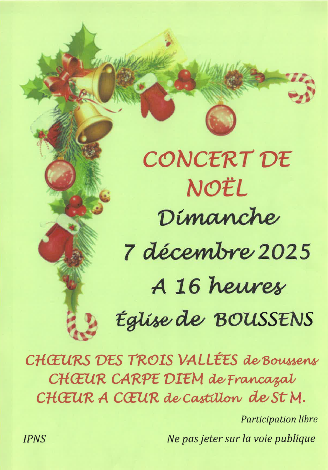 Dimanche 7 décembre 2025 à 16 h Eglise de Boussens