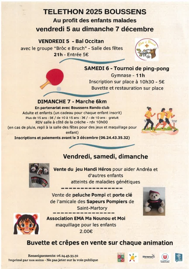 TELETHON à BOUSSENS du 5 au 7 décembre 2025